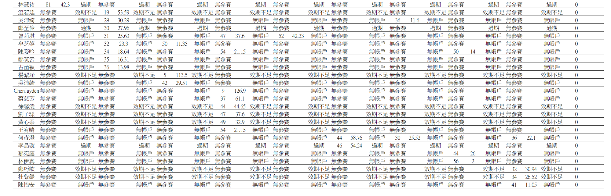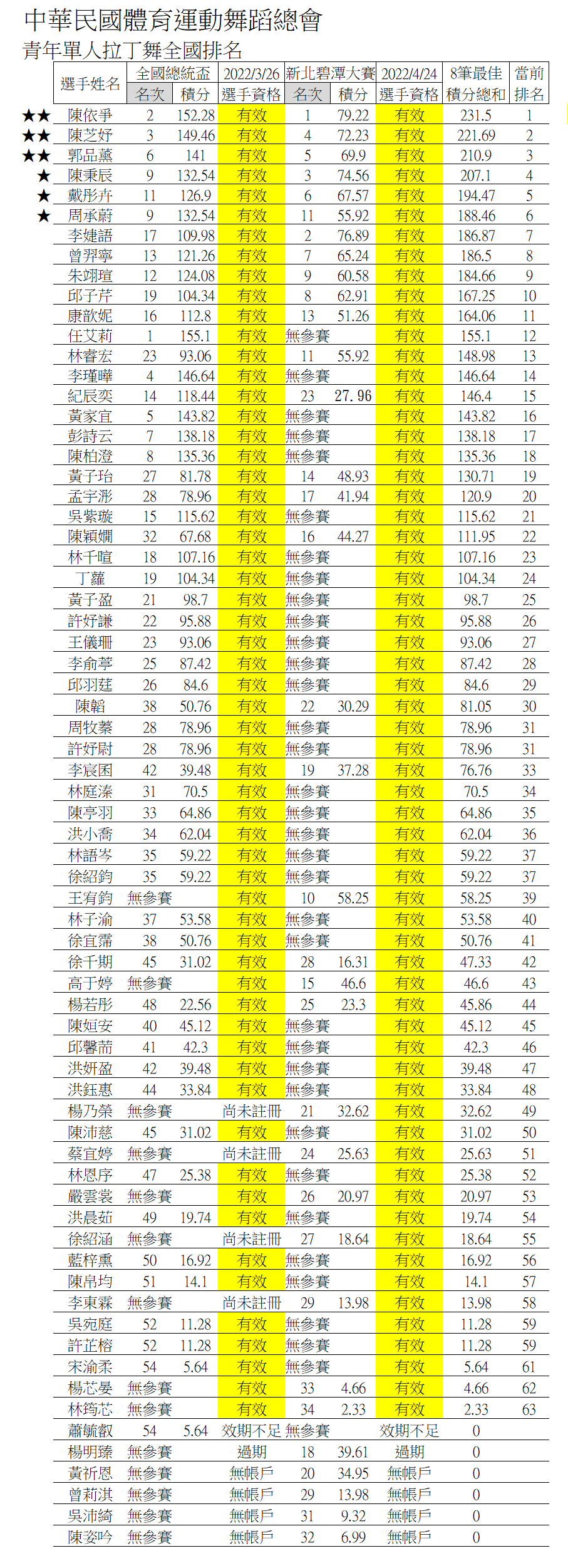 因資料已越趨龐大,本次開始不公佈積分有效狀態,如您有積分未列入計算,請先查詢您的選手效期是否包括比賽日期