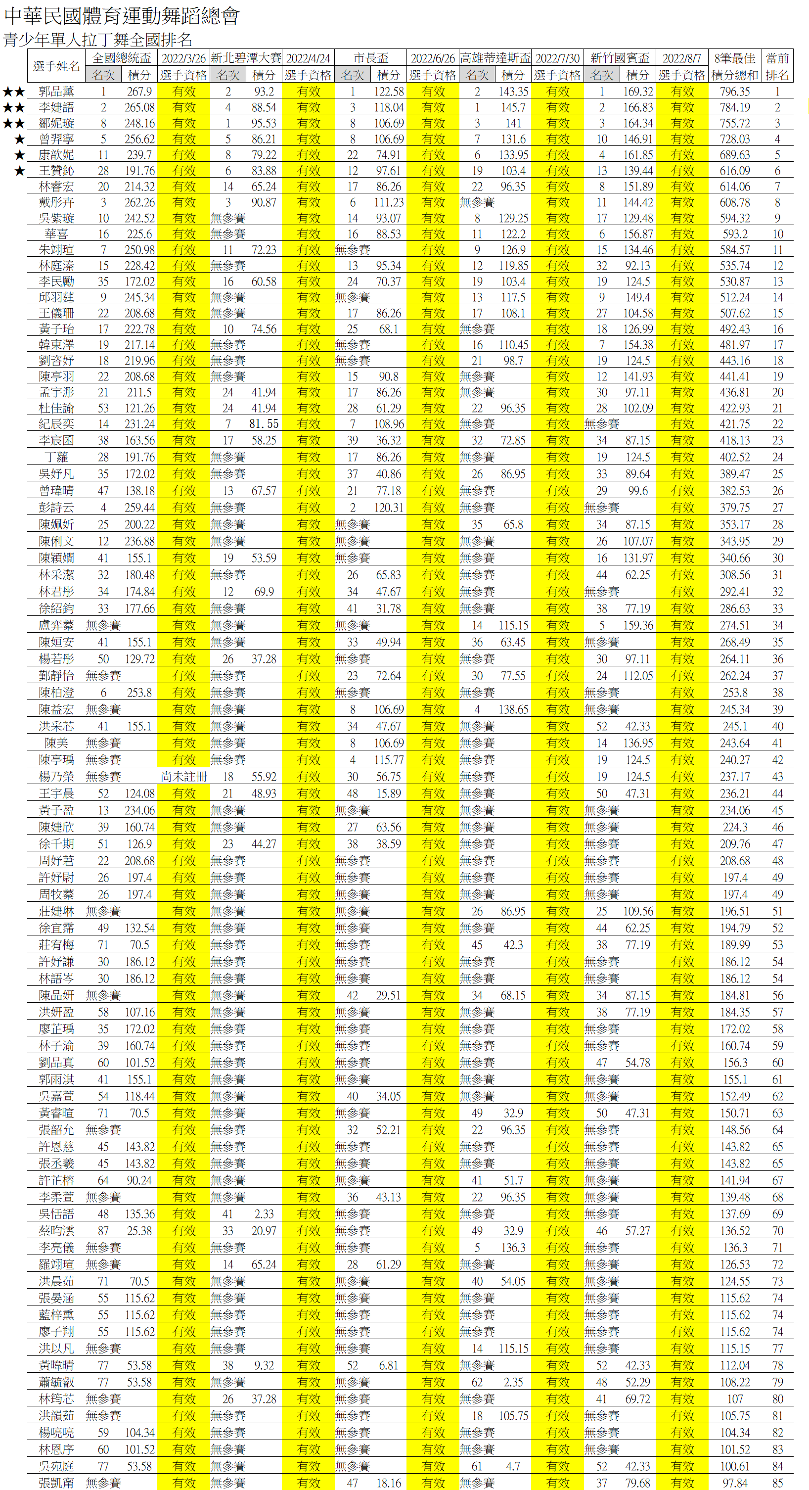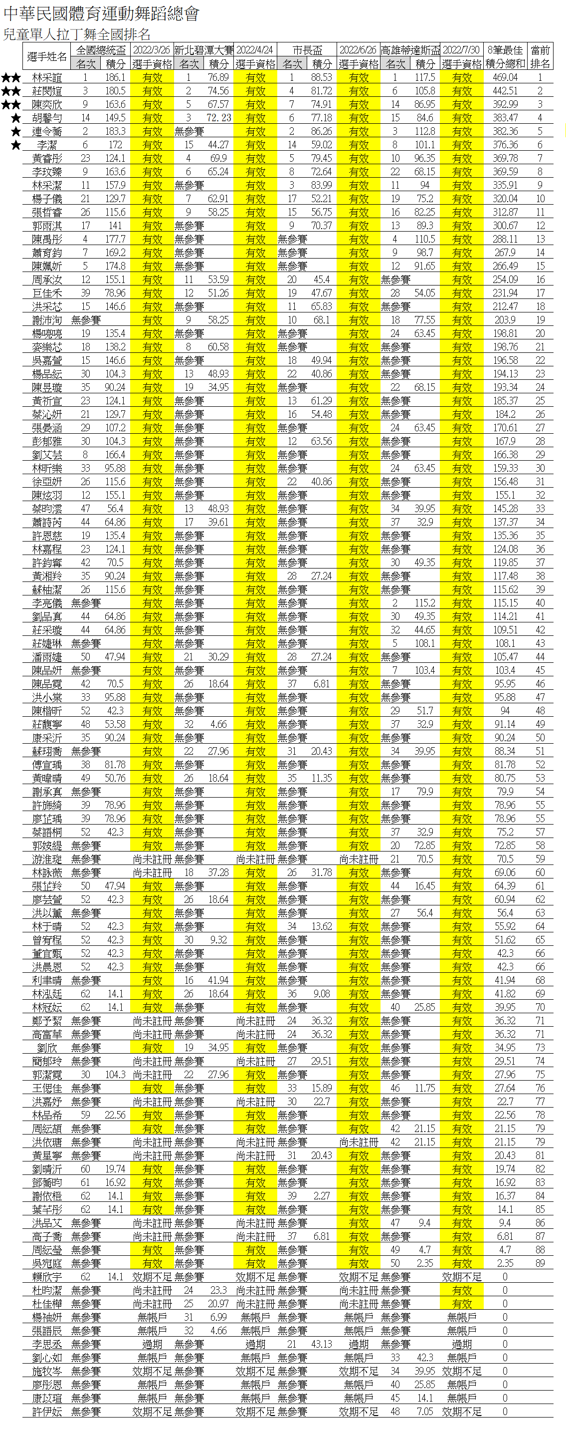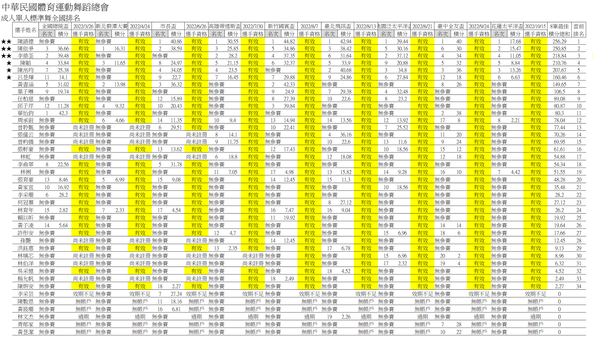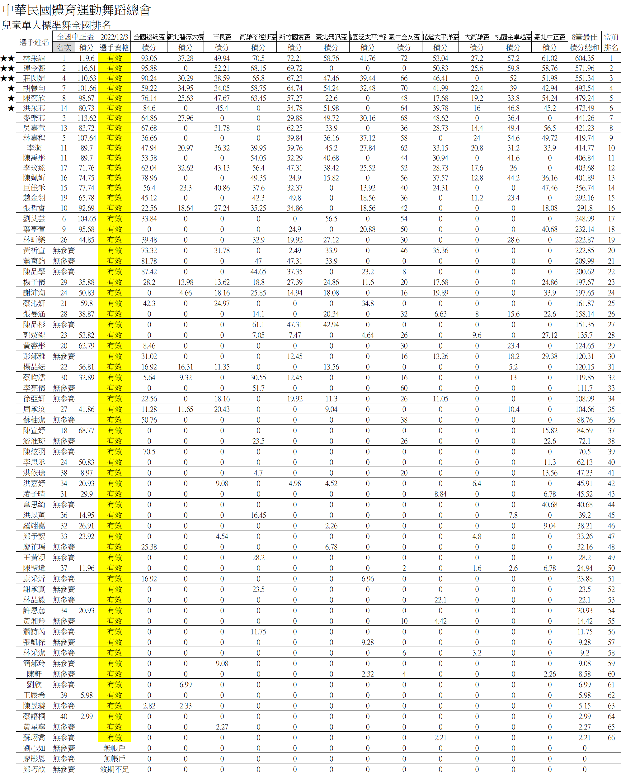 因資料已越趨龐大,後續將不公佈積分有效狀態,如您有積分未列入計算,請先查詢您的選手效期是否包括比賽日期