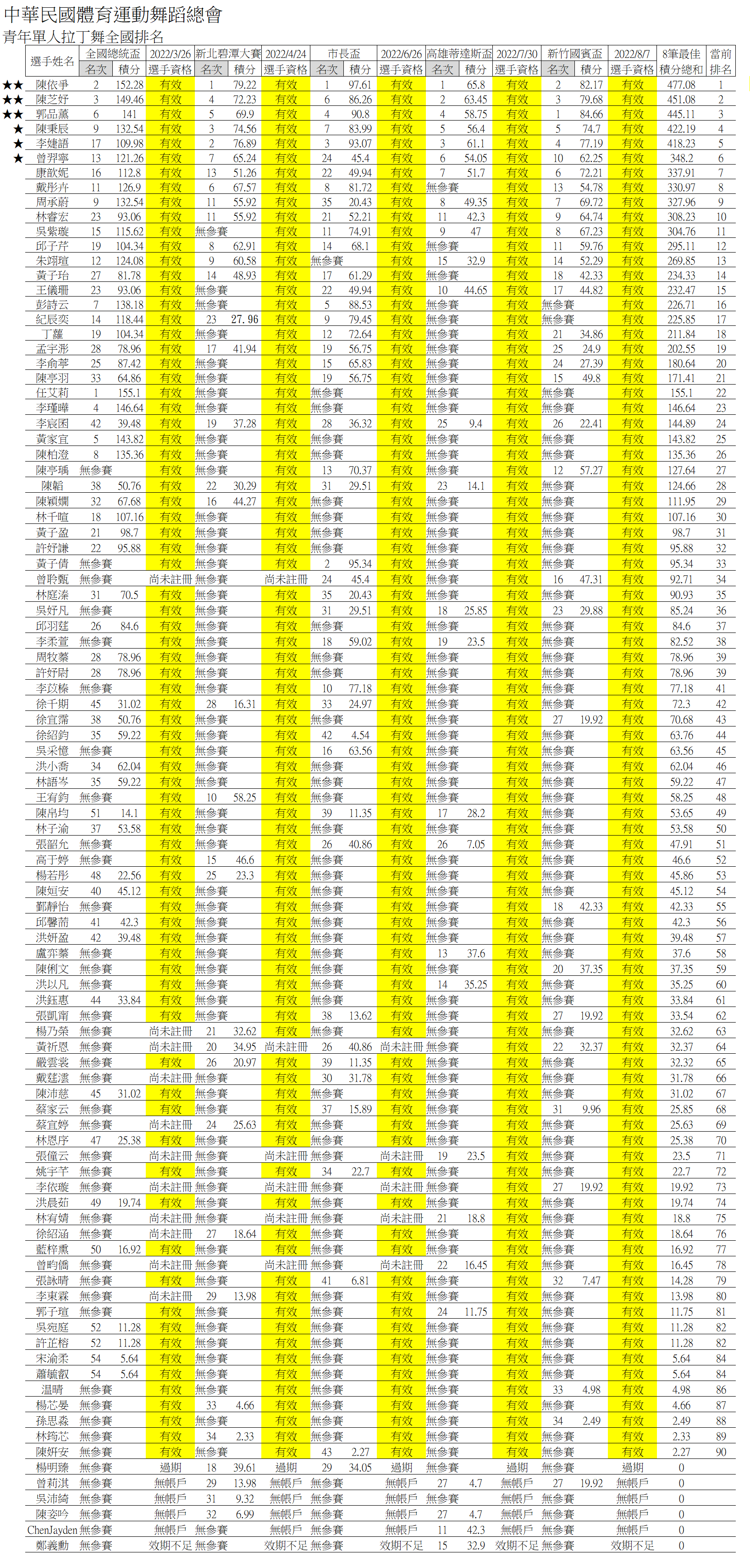 歷史公告事項 : 本表供教練/選手檢查核對,如有發現任何問題,請於12/12下午17:00前連同所提問題之說明提報至 ctdsfweb@gmail.com,逾時提出或未提出問題視為同意本會所公佈之成績,待核對無誤本會將再公佈最終成績及受獎名單