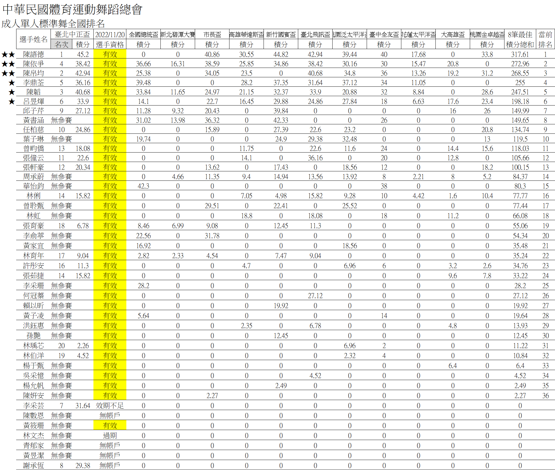 2022-11-20 臺北市中正盃後單人舞全國排名