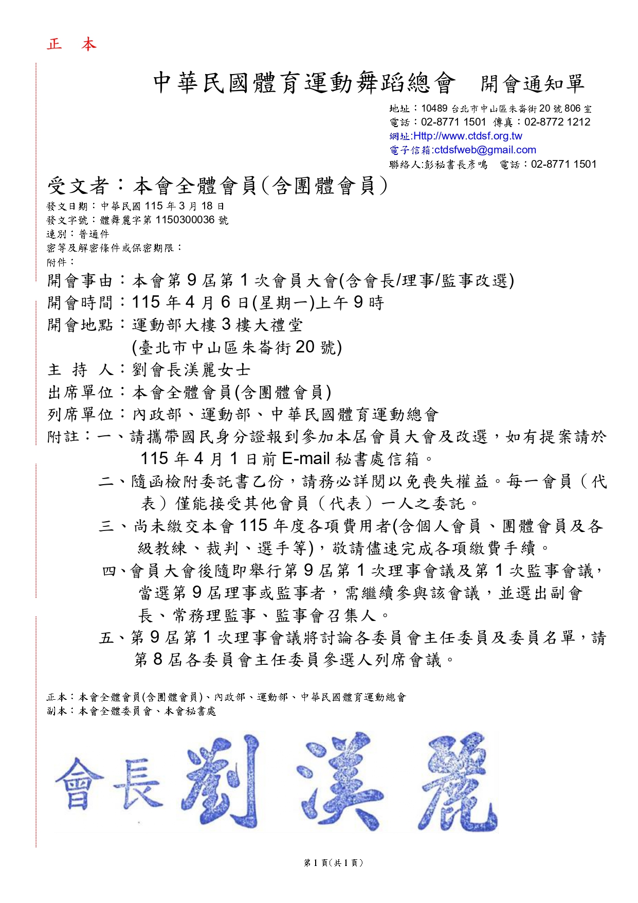 新聞一覽 news 搜尋: 全部一般圖片影片 新聞共有 480 筆 12026-03-21一般本會第9屆第1次會員大會開會通知22026-02-20一般本會第9屆會長、理事、監事選舉實施原則32026-01-01一般敬請本會團體會員/個人會員繳納115年會員年費42025-11-28影片世錦賽史上第一金,王儀珊為台灣寫下歴史52025-11-28影片中華隊5人全進準決賽 台灣史上第一次/愛爾達電視2025112962025-11-11一般本會114年拉丁舞/標準舞B級裁判講習會實施辦法72025-10-13一般114年拉丁舞標準舞國家A級教練講習82025-10-08影片全國中正盃國標舞熱戰! 拉丁舞新王者摘金/愛爾達電視20251004 1 2 3 4 5 6 7 8 9 10 ..> >> 下一頁