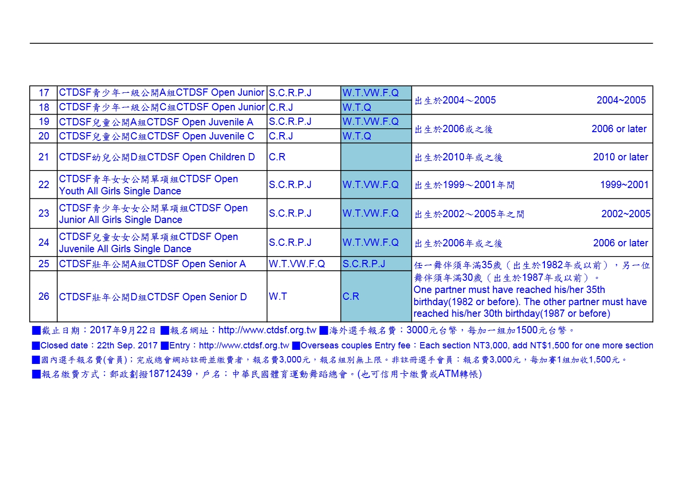 • 中文版報名組別 Events